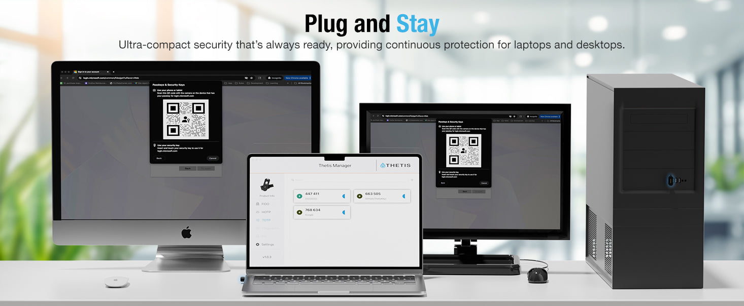Ultra-Compact FIDO2 Security Key – Plug-and-stay or carry on a keychain. This USB-A hardware security key offers portable, always-on protection for desktop use.