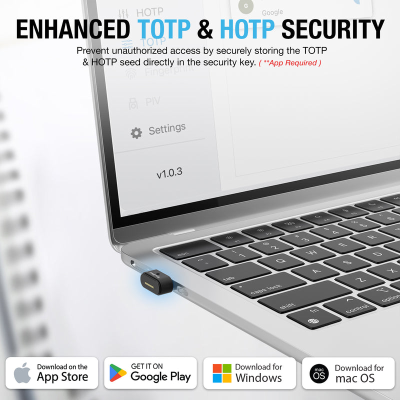 Advanced Multi-Factor Authentication – Offers 200 FIDO2 passkey slots and 50 OATH-TOTP slots. Strong, flexible 2FA/MFA support across various apps and authentication platforms.