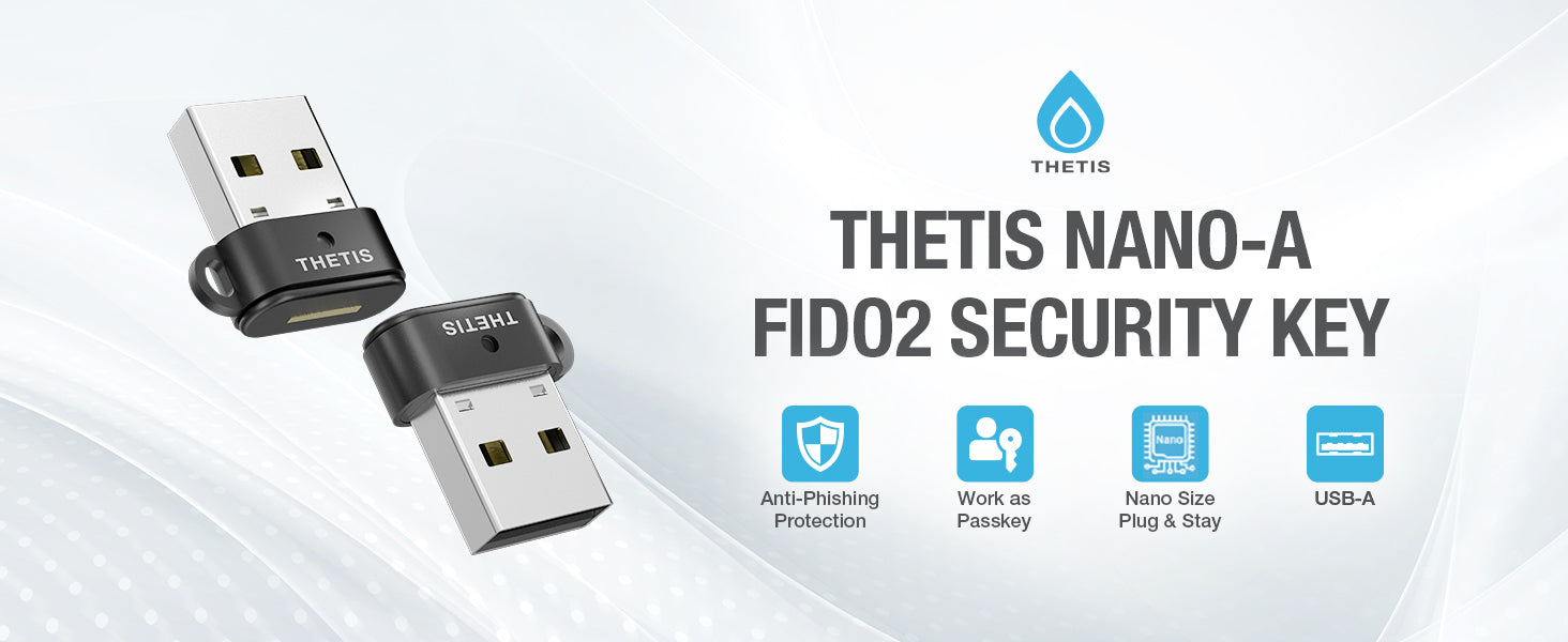 Thetis Nano-A FIDO2 Security Key Device - Passkey, USB-A